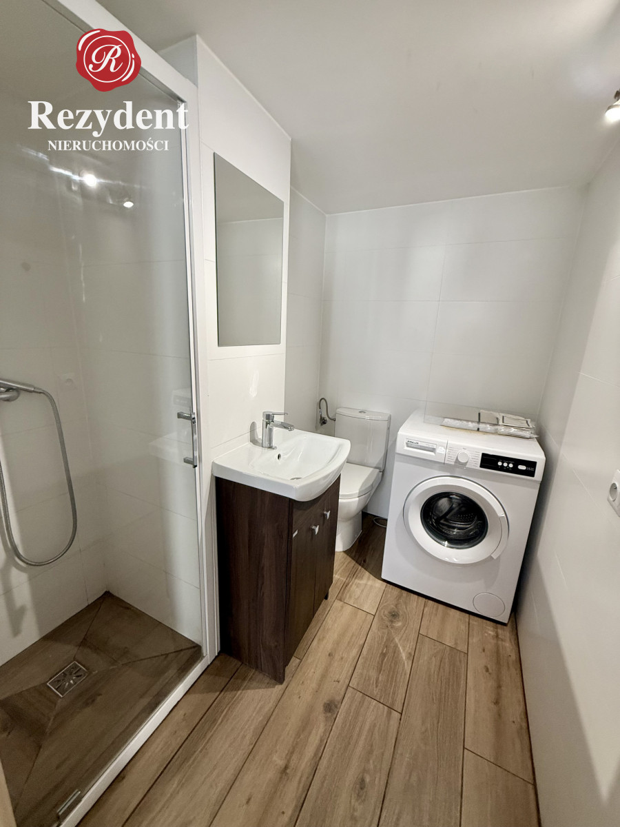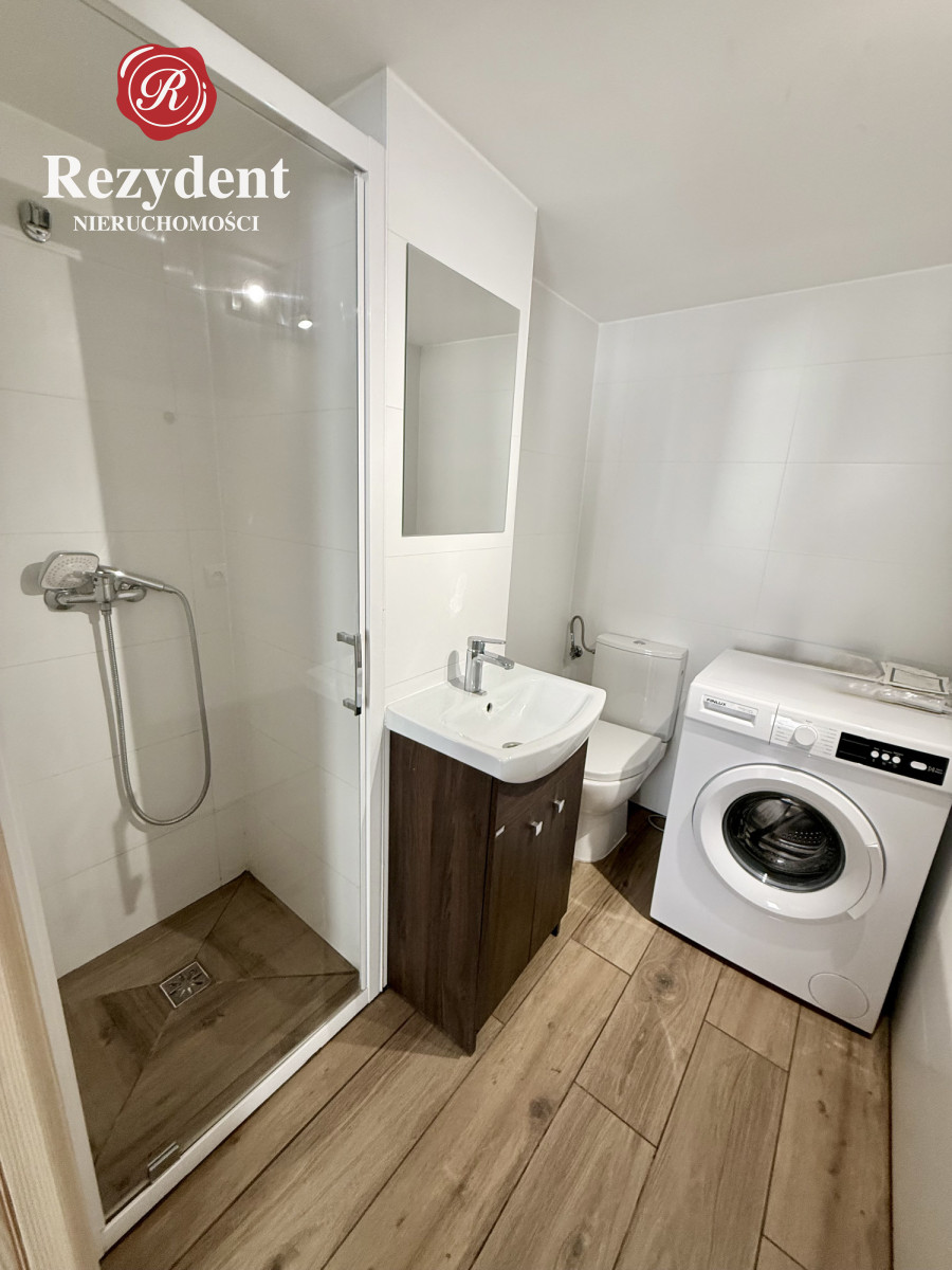 - łazienka 3m2 - wyposażona w kabinę prysznicową, umywalkę, lustro, pralkę i WC